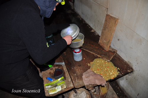Gatitul la primus e interesant, iar mancarea calda pe munte o bucurie! De data asta insa cratita cu mazare s-a varsat…