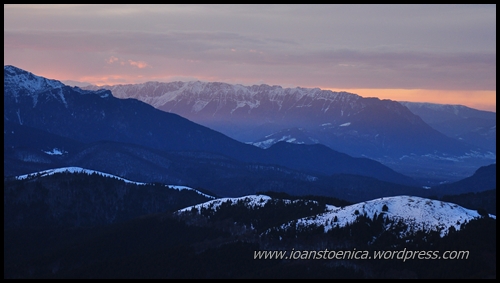 cer roz iarna pe muntii baiului