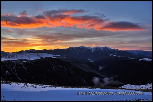 apus portocaliu iarna pe munte
