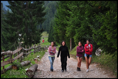 fetele pe drum, spre casa de piatra