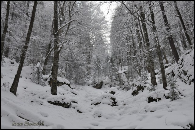 Oricum zapada proaspata si adanca fusese batatorita atat de bine incat nu mergeai pe urmele celor ce-au trecut inainte, mergeai parca pe bulevard! Era un tunel foarte clar si bine batatorit pe poteca, asa ca am mers destul de usor.