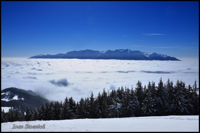 Plafonul de nori se afla mai jos decat noi, atat de dens, de uniform, de… fara capat! Toata depresiunea Brasovului era sub nori, toata valea pana la Ciucas era sub nori, iar deasupra lor… doar varfurile muntilor… si noi!