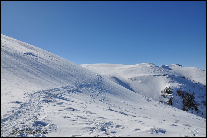 Desi parea cam expusa potecuta, sub panta aceea plina de zapada, urmele facute creasera deja un tunel serios…