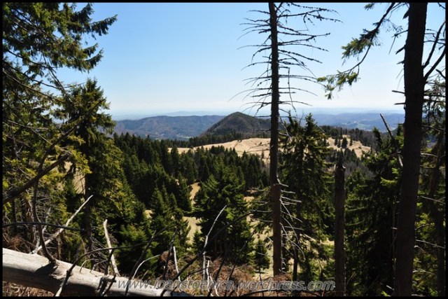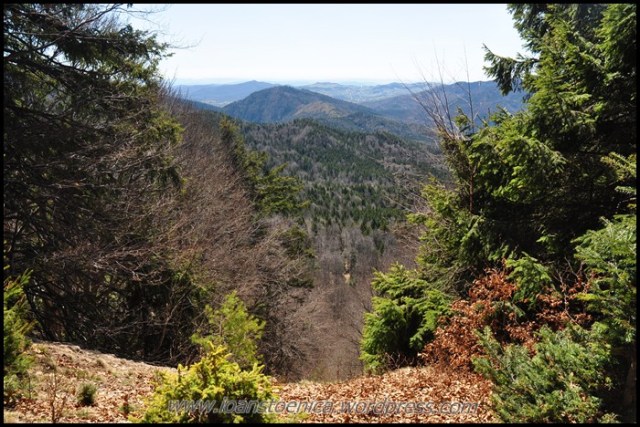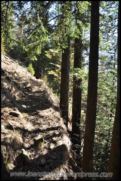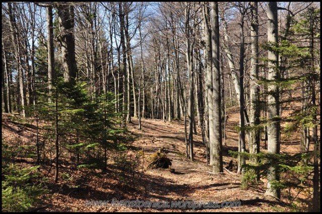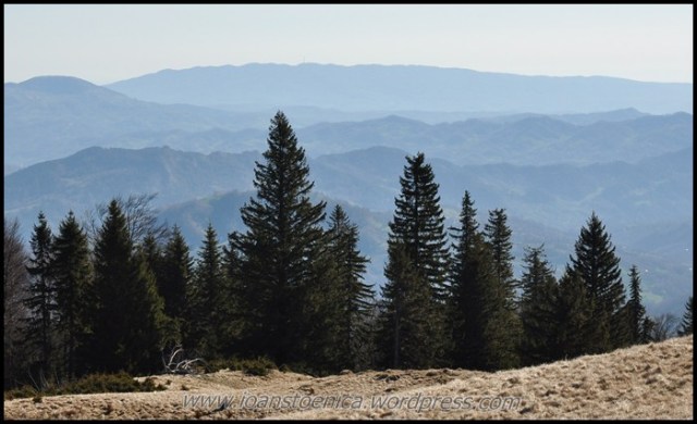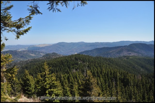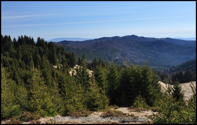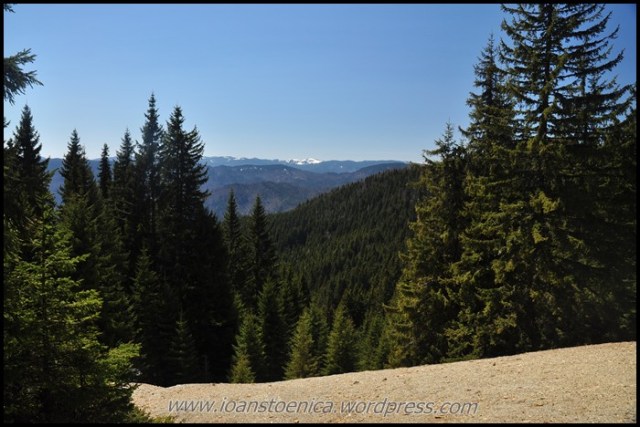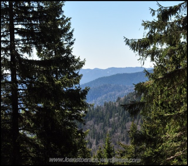 Sunt cateva coborasuri si urcusuri, dar in cea mai mare parte drumul merge orizontal prin padure. Uneori sunt si poieni, cum ar fi pe Laposul de Sus (1455m). Privelistile sunt obturate in unele parti de copaci, dar ceea ce se vede printre ei imi aminteste acelasi lucru ce mi se pare definitoriu pentru acesti munti: nu vezi decat natura, culmi muntoase, impadurite sau putin golase, esti inconjurat de ele si nu se vede nicio urma de civilizatie in jur, nicio casa, niciun sat.