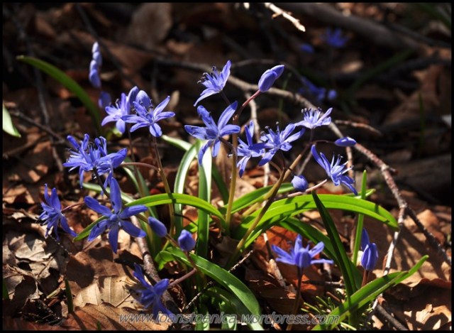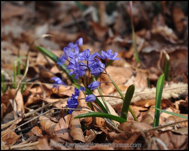 Iar prin iarba sunt multe viorele albastre, dar si ghiocei sau chiar branduse uneori. Cu asa soare puternic pe cer nu-i de mirare ca-si deschid si ele petalele spre el.
