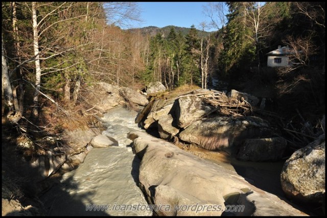 Desi pe drumul spre Nereju am vazut pomi infloriti si totul verde, aici primavara e in intarziere. E mai racoare, nu mai e zona de deal, deja e aer de munte. Dar asta nu ma supara. Iarba incepe incetisor sa-si recapete culoarea verde, baltile formate din topirea zapezii dau viata poienii si chiar daca nu au inverzit copacii inca, ma bucur de floricelele din iarba si de soarele caldut ce face raul sa straluceasca in vale.