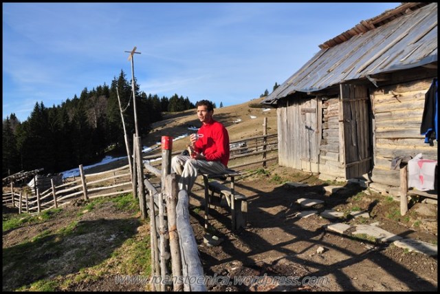 Stana e in stare buna, un adapost ascuns la margine de padure pe care il inspectez ca si cand vreodata am sa revin la el si sa stiu la ce sa ma astept. Sau poate ca sa stie altii. Chiar ma gandeam ca o varianta mai lejera pe acest traseu ar fi cu oprire in zona Zboina Frumoasa si continuat a doua zi. Aceasta stana e numai buna pentru asta, dar pe timp de vara probabil e ocupata si ea.