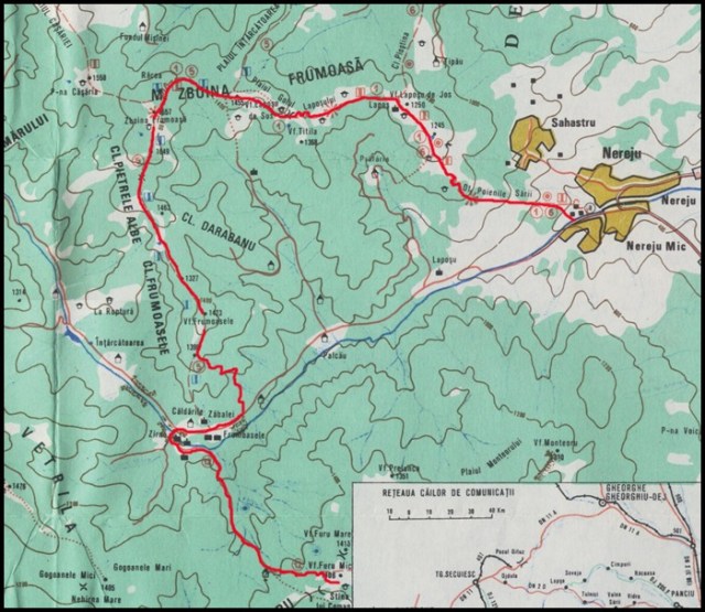 Sat Nereju – vf Laposul de Jos – vf Zboina Frumoasa – culmea Frumoasele – caldarile Zabalei – vf Furu Mic.