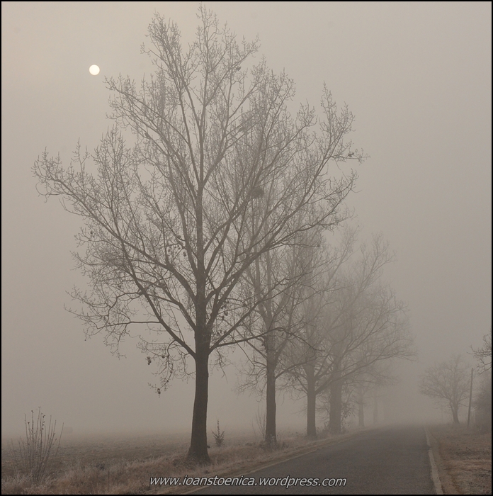 drumul ce duce spre orasul victoria este invaluit in ceata diminetii.