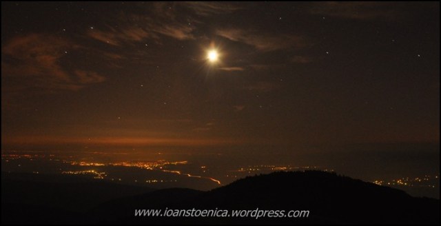 Am gatit o supa si un piure – ultimele provizii, dupa care ne-am asezat iar la povesti pe iarba moale. Cu cerul instelat si orasele luminate in vale am avut motivul perfect sa incropesc un trepied din niste crengi uscate…