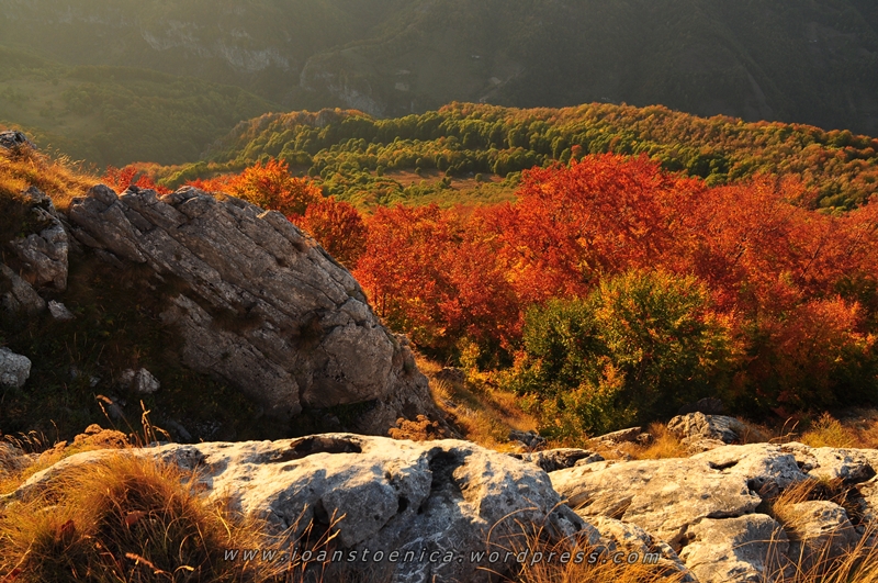 Copaci in flacari. Toamna in muntii Mehedinti.