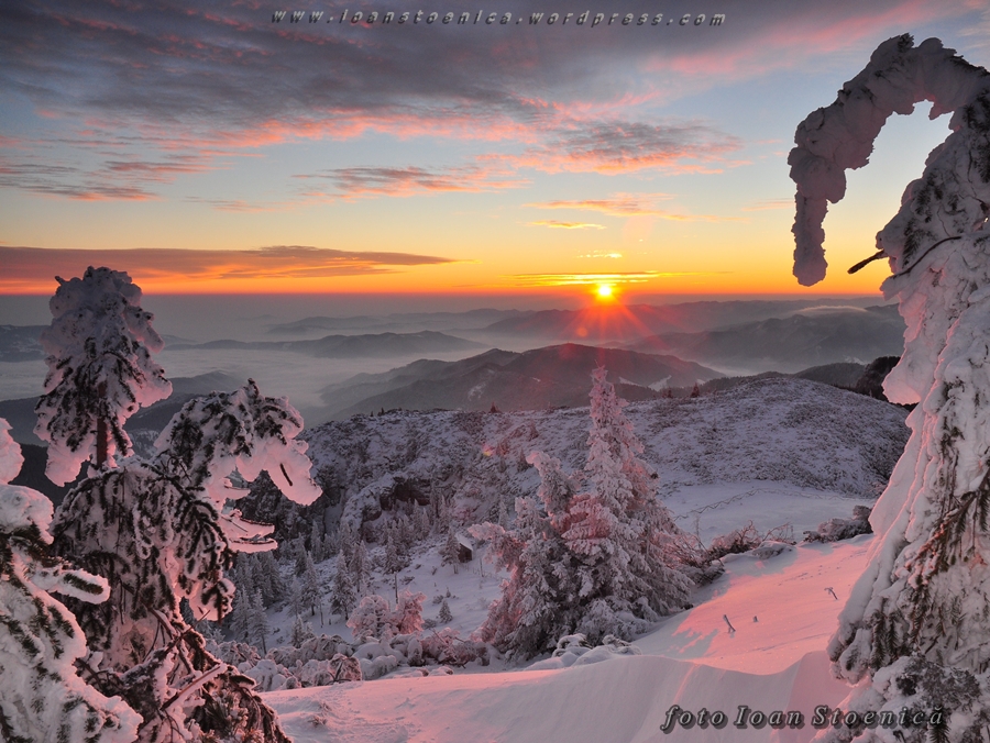 iarna in ceahlau, rasarit celebru si colorat.
