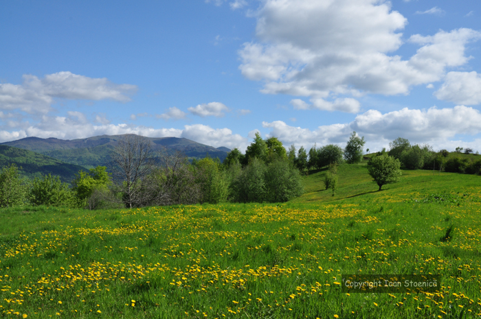O poiana verde plina de papadii. Mergand singur spre muntii Tataru, nu pot sa nu ma opresc cand vad atata culoare si frumusete!