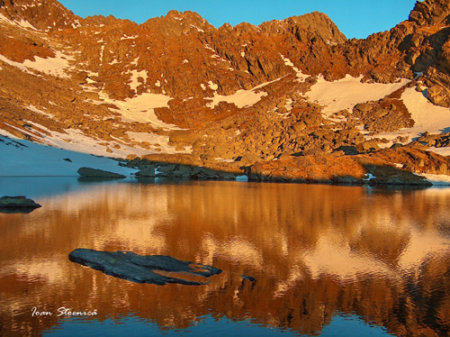 Vf Negoiu reflectat in lacul Caltun.
