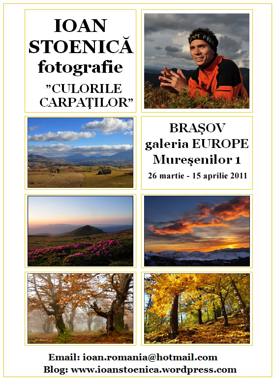 intre 26 martie – 15 aprilie, la galeria Europe din Brasov are loc o noua expozitie Adrian si Ioan Stoenica. Pictura in pastel si fotografii cu peisaje care sa va bucure ochii si sufletul.