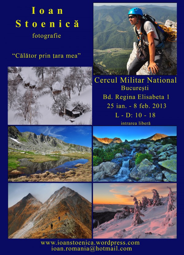 In perioada 25 ianuarie – 8 februarie voi expune fotografii cu peisaje la Cercul Militar National din Bucuresti. Detalii pe afis.